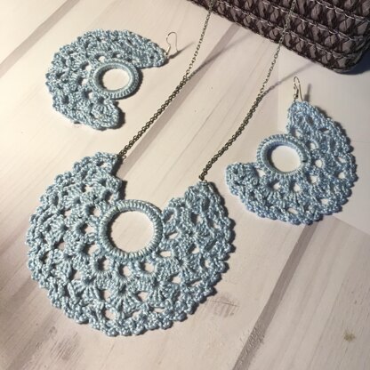 Moon-shaped earrings and pendant. In light blue.