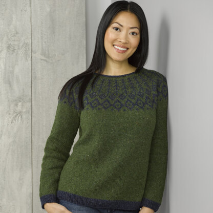colourwork that is perfectly on-trend. This version is knit in soft, tweedy Valley