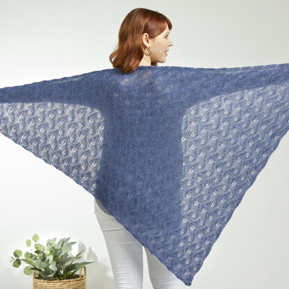 classic triangle shawl with an all-over lace pattern with a leaf lace border