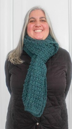 While I wouldn’t necessarily recommend a scarf of this length for a true beginner, the results are totally worth it! This easy stitch pattern creates a reversible texture and the wide and long unisex scarf is guaranteed to keep you warm while offering an array of styling options.