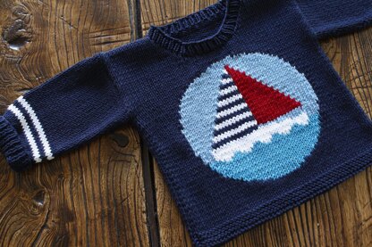 This adorable little sweater is super playful and joyful. The fit is comfortable with a good amount of ease making it great for active little ones. It is also perfect to pair with a whole range of outfits, taking it through the seasons. The ‘through the telescope sailboat’ motif is bold and stylish whilst being relatively easy to knit. The sweater also features a fold-back sleeve cuff that can be turned down as the kiddies grow, making it wearable for longer.