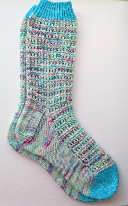 Pattern Notes (Please read before you begin): This is a cuff-down sock pattern The fabric created by this stitch is very stretchy I have included notes for where to change your yarn if you are using contrast yarn for toes and cuffs.
