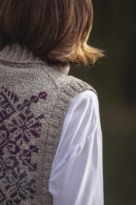 Notions: Stitch markers, row counter, scissors, tape measure, stitch holders or waste yarn, tapestry needle, for steeking: “sticky” lace or light fingering weight waste yarn, crochet hook in smaller size and sharp scissors.