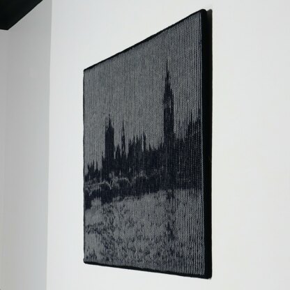This is a view across the River Thames, looking towards Westminster Bridge and The Houses of Parliament. When you look from directly in front of the illusion the view disappears and you see only stripes.