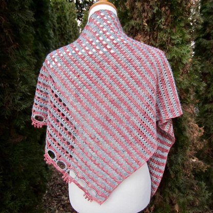 Patterns of stable holes travel across the Abbie wrap in two different directions. This asymmetric piece is worked from side to side and begins with just 5 chain stitches. It grows wider with each row worked. Abbie is also striped throughout. It’s a great way to incorporate two of your favorite colors in a wrap. The final product is both lacy and airy and unusual and striking. It is the perfect wrap for the warmer months.