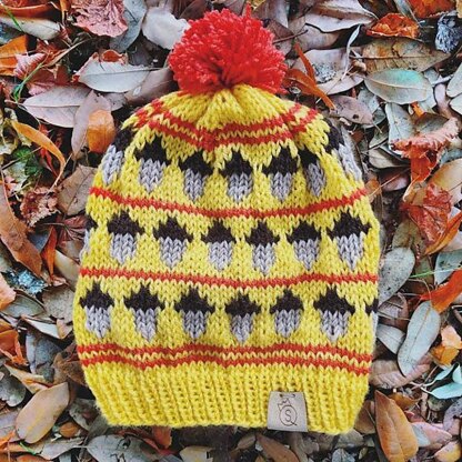 This fun fall pattern features a repeating fair-isle motif of acorns. Switch up your color scheme to show the different, colorful phases of fall! A good pattern for beginners of knit color-work.