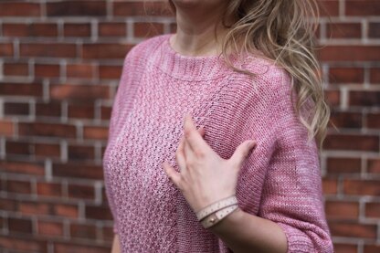 Fun constructions make for fun knits! Across is – as it’s name suggests – worked across from cuff to cuff. First stitches are cast on for the right cuff, then the sleeve is worked to the body, increasing along the way to shape the sleeve. Additional stitches are added for the body, which then is worked flat until the neck opening. The stitches are then divided into the front and the back, each worked separately, before the two portions are joined again and the process is reversed all the way to reaching the left cuff.