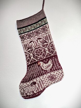 This is a pattern for a decorative stocking using the Stranded colourwork knitting technique. The stocking is knit in the round and from the cuff down through most of the foot. Then the piece is worked flat and shaped by binding off stitches and then sewn together.
