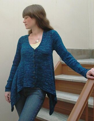 Light and drapy with an interesting construction, Adina is the perfect autumnal cardigan. Well suited for weekend getaways or early autumn evenings. Worked on larger needles in fingering weight yarn, the fabric is open without being sheer. Neat rolled edges are kept in place with spots of ribbing and the placket and neck trim is worked at the same time as the body. Finally, an eyelet pattern finishes the cardigan at the yoke.