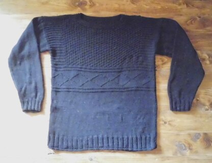 ADRANO - a beautiful pullover in aran-weight cotton. The handsome pattern is inspired from the Fisherman's guernseys of the British Isles. Worked flat. The pattern is a textured pattern worked from chart. Written pattern. The sleeves are drop-shoulder sleeves. Difficulty of execution measured from 1 (beginner) to 5 (advanged): 3.