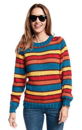 Adult's Knit Crew Neck Striped Pullover in Caron Simply Soft - Downloadable PDF