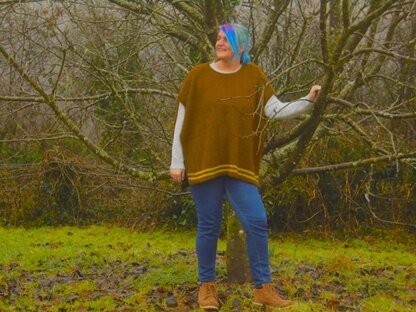 This poncho is one of the most versatile items you can have in your wardrobe: great as a snuggly garment inside, and comfy and warm as an outer garment in spring and autumn. The poncho is knitted with the side band incorporated into the pattern so no fiddling about to add a border at the end. The sample has a longer back than front but you can customise your own length. The width is one size but easy to adapt should you wish.