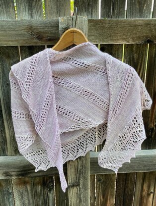 Designed for Circus Camp Loopy 2021. A long shawl, worked sideways with a swooping, lacy edge and an ornate finishing edge.