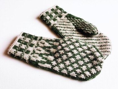 Gauge 24 sts = 10 cm / 4” in colourwork on 4 mm / US 7 dpn’s or size needed to obtain gauge