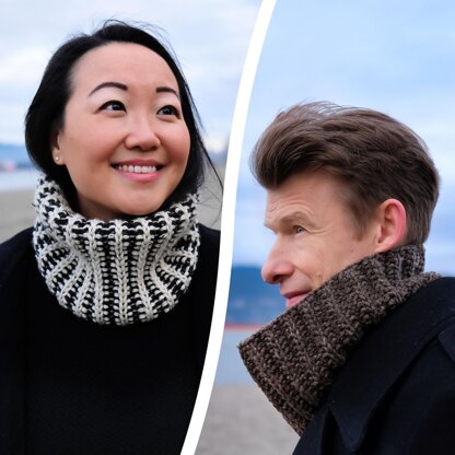 This unisex fully reversible pattern knits up quickly on a large gauge and is easy to customize for an entire family! I designed and knitted 3 cowls in 4 days! The finished cowls feel cozy and look great on adults and children! Have fun with yarn and motif play!