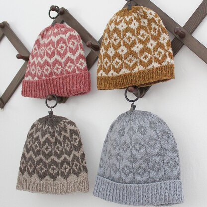 The Alacer hat is all about choices! By shifting the colorwork pattern a few stitches, you can create a whole different look. So, whether you choose a classic beanie or a folded-brim watch cap, and decide to stack or stagger your diamonds, you'll create a hat just for you!