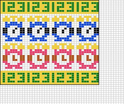 Note: you can add numbers, alarm clocks in other colours and change the time on the alarm clocks. A cute idea would be also be to put a time code e.g 11:10 into the peerie pattern. But you can also use the alarm clocks as an allover pattern without any peerie.