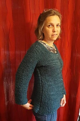 Worked from mid back up to shoulders, then upper fronts, working down to the hem, pick up back pieces working down to the hem, pick up side pieces to add short row shaping and create the Aline lower body.