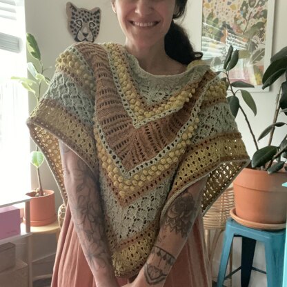 All Things Summer is a triangular knit shawl that embodies everything we love about the summer months! The shawl features lace and bobble stitch patterns broken up by simple eyelet rows. The variation in the stitch patterns and changing colors will be sure to keep your interest. Knit up in Fantastic Farm’s domestic yarn available in a variety of naturally dyed shades. Bring along the All Things Summer shawl on vacation to wear for a walk on the beach or date night out!