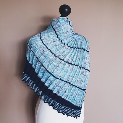This asymmetric triangular shawl combines my two preferences for plastic structure patterns and color contrasts.