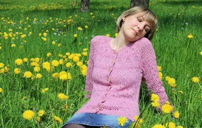 The blossoms and almonds on the yoke and the delicate eyelet pattern on the body and sleeves give this cardigan a feminine, subtle, romantic look. It's constructed seamlessly with careful attention to details. Charted and written-out instructions lead you easily through the steps of creating a garment that will warm your heart on cooler days.