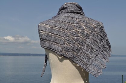 Aloft is an asymmetrical triangle shawlette worked from the widest edge down to just a couple of stitches.