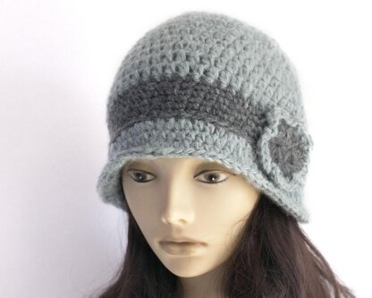 An easy pattern to make a soft snugly winter cloche hat with a simple flower. Retro flapper style.