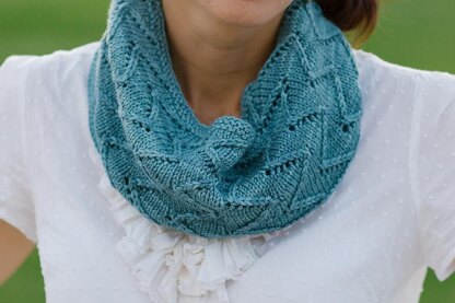 Alpenglow is a long cowl that can be worn open or double-wrapped around the neck. A fun chevron lace pattern makes this cowl modern and stylish. Alpenglow was inspired by the Rocky Mountains that surround my home in Colorado.
