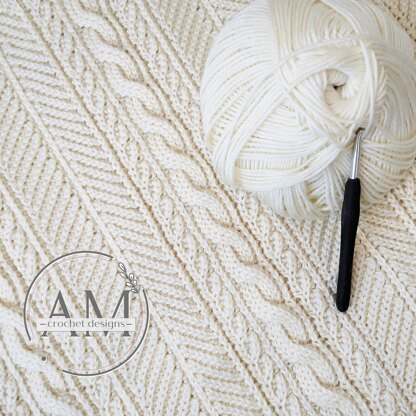 ♥ The cabled pattern is gorgeous and it will be an amazing piece for any couch or bed. ♥This blanket is worked sideways and the stitchery is repetitive, joined as you go without sewing lines. ♥ The instructions are very easy to follow including large photos for each step along the process.