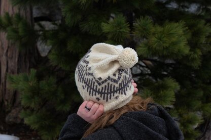 The Sierra Nevada mountain range is dotted with crystal clear alpine lakes, each of which is surrounded by a panorama of trees and ridgelines. This beanie is perfect for a winter day adventuring around your favorite alpine lake. The colorwork motif features the mirrored reflection where the mountains meets the lake, and is knitted using stranded colorwork in two contrasting colors.