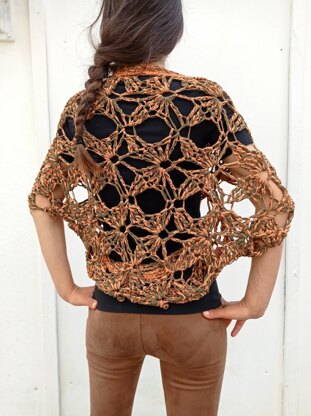 It’s very fun and quick to do. The pattern contains diagram and his written instructions and also pictures to help you to assembly your cocoon. it’s a one size shrug: bust length: cm 50 + 5 of border width from end of sleeve to end of sleeve: cm 80 (the pattern contains instruction to make it larger)