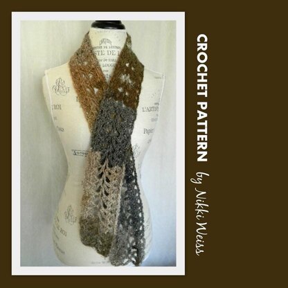 A beautiful scarf that highlights the color changes of Amazing. The design features a middle panel of lace, when combined with this lighweight yarn, makes this a wonderful scarf for fall or when you want a lightweight scarf for winter. This scarf uses a simple 2-row repeat, which is quite simple once you get the hang of it. Easy and quick for experienced crocheters, and a good project for beginning crocheters who are ready to move up to learning new techniques.
