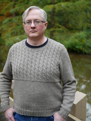 front features a simple, gansey-inspired cabled pattern and the body and arms are knit in