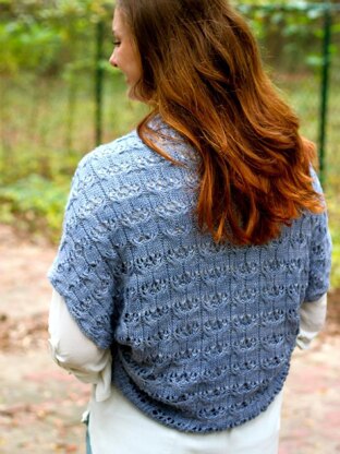 The Ambrelle Shrug is a simple rectangular shrug in a luscious merino/cashmere/silk blend with a cable lace motif. Perfect for an extra layer of warmth or to throw offer a sleeveless dress or top.