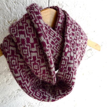 Amecameca is worked in the round, and features a repeating motif inspired by Aztec textiles. Charted instructions are provided for two motif variations. All measurements given in both inches and centimeters.