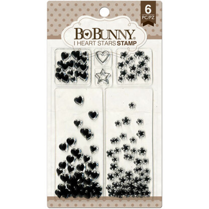 Bo Bunny-I Heart Stars Stamps. Add a fun image or saying to your paper crafts! Just stick to any acrylic block and stamp! This package contains six clear stamps on one 6x4 inch backing sheet. Imported.