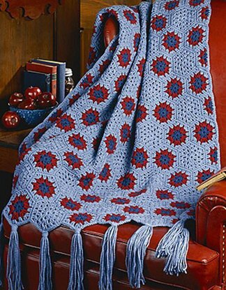 Leisure Arts Liberty Afghans American Hexagon Afghan Crochet ePattern- Show your American pride with this patriotic red and blue afghan. American Hexagon Afghan design features simple single-color granny hexagons offset with a pattern of red, blue and navy granny hexagons. Project can be made using size 4 worsted weight yarn and a US size I-9, 5.5 millimeter, crochet hook. Includes step-by-step instructions and a general guide to crochet. Finished afghan measures approximately 45"x 54". Originally published in Leisure Arts Leaflet 2859 Liberty Afghans. 3 page PDF download.