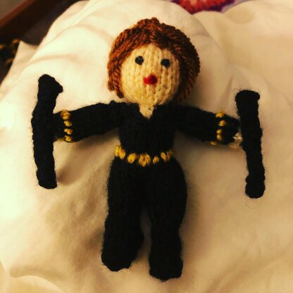 The Amigurumi Black Widow is 11.5cm/ 4.5 inches tall. One ball of each yarn colour will make many Black Widows.