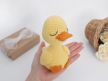 The finished crochet duck toy is about 3 inches (13 cm) tall.