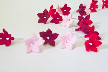 This pattern is written in UK terminology. Any type of led light string can be used. Or the lights can be omitted and the flowers can be attached to branches on their own.