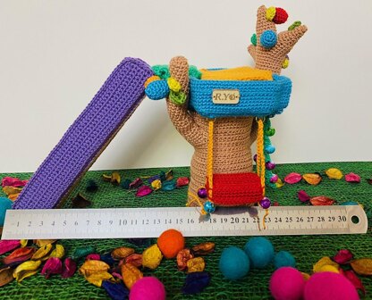 Hello our friends and amigurumi lovers around the world, we designed a fully crocheted Amigurumi Jungle of dreams, we will lunch our new soft jungle items in parts. In this pattern we launch jungle of dream named (Tree Bed & Played area). This pattern is containing (Tree body, Bed, Mattress, Slide, Stair and Swing), such a beautiful crochet Tree Bed & played area will be an amazing gift for a little Kid in different occasions or a decoration item. The suitable doll that matching with this pattern will publish in our store for free. This pattern is written and designed by Reham Youssef the owner of R.Y amigurumi and please note that it is for your personal used only and it is not allowed to sharing, reselling and reproduce it in Internet or any way of published, you are able to sell the product only as you want.