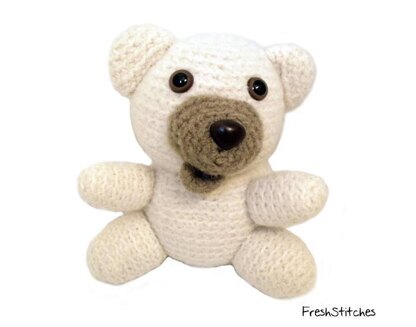 This bear is a smaller version of Gerry the Felted Bear and is 8.5" tall when completed! Little Ger is a fantastic beginning project for felting: it's so easy! You crochet the pieces from a wool yarn, and then toss them in the washing machine, and magic happens! This project is crocheted holding two strands of yarn together and a big hook, so it works up fast. And because this bear is felted, it's very durable and huggable.