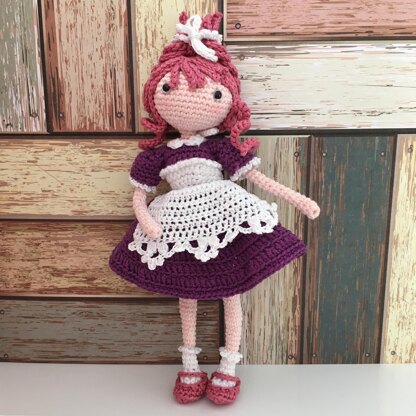 Fay measures about 19 cm when I crochet her with 1.5mm. When you go up a hooksize, she might be bigger, but proportions remain intact. I created Fay to celebrate Nurses around the world and the work they do. Her dress is based on the older Nurses clothing they used to wear in the Netherlands.