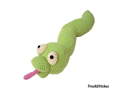Yowza! What a snake! Richie measures 20 inches long when completed. Don't worry though, he's completely harmless... and loves snuggling inside.