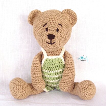 Amigurumi animal toy can be made with sport or worsted weight yarn. The finished bear size is about 12.2 inch (31 cm) when done with sport weight yarn and size C crochet hook (2.75 mm ). The size of bear may vary depending on the size of hook and yarn you use.