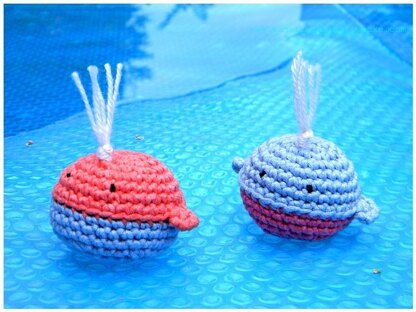 The whale is about 1.5 " 2 in diameter, depending on yarn and hook you are using.