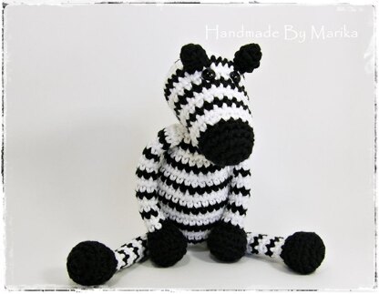 Finished zebra is about 10" (25 cm) tall if you use 3,5 mm (or 4 / E) crochet hook.