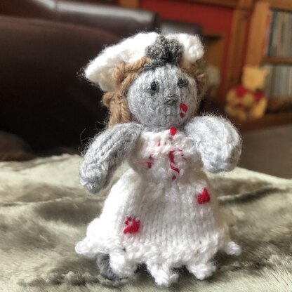 The Amigurumi Zombie Bride is 11.5cm/ 4.5 inches tall. One ball of each wool colour will make many Zombie Brides.