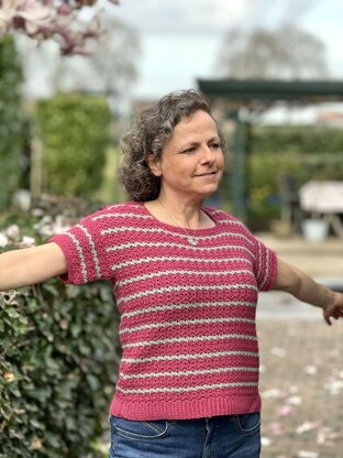 Amira Tee is a crochet pattern for a lightweight spring and summer tee in 7 sizes : from XS up to 3XL.