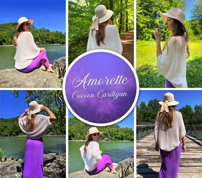 Wrap yourself in comfort and elegance with the Amorette Cocoon Cardigan - a lightweight and drapey crochet cardigan perfect for spring and summer days. Made in one piece with minimal shaping and no increases or decreases, this beginner-friendly pattern is a relaxing and satisfying project for all skill levels.